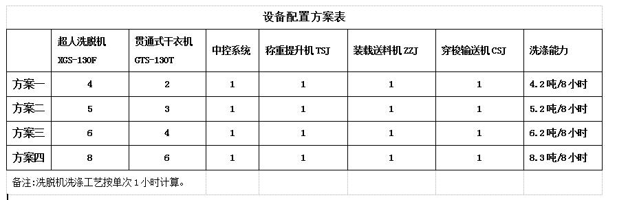 力凈集成式自動(dòng)化洗滌系統(tǒng)配置方案設(shè)備配置方案表